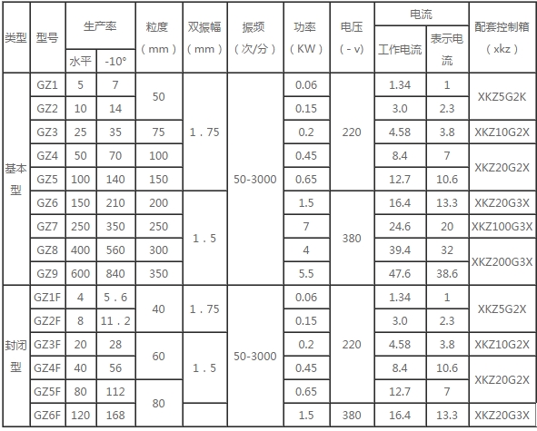 GZ電磁振動(dòng)給料機技術(shù)參數